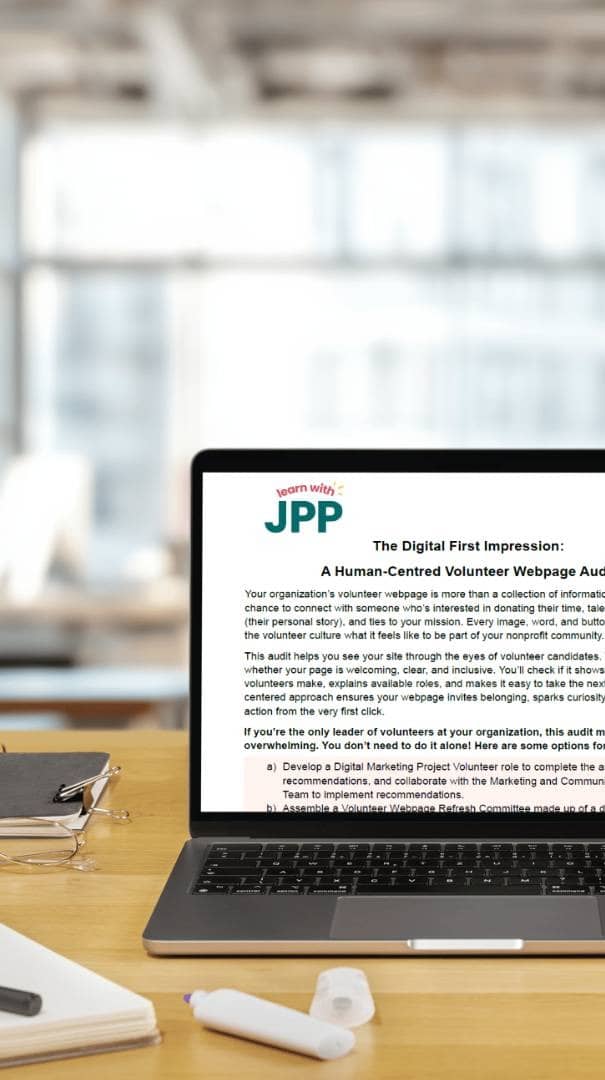 No jargon. No overwhelming redesign projects. Just a practical checklist that reveals what's working and what's costing you valuable volunteer trust. You'll learn why load time matters more than you think, how to provide clarity about the volunteer journey, and which accessibility fixes to prioritize. Includes support strategies if you're the only person tackling this.